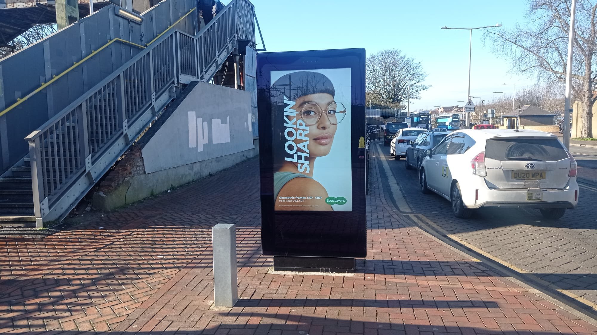Live bus and train times loop with the ads, so people waiting actually watch the screens.